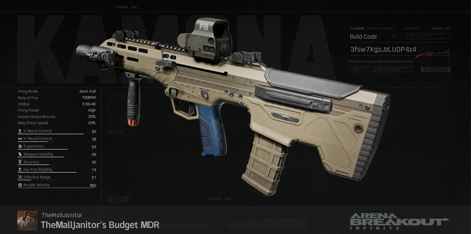 This gun build will take you to victory in both Lockdown and Forbidden. Little recoil and very budget friendly, this gun feels like a truck. And for as little as 230k, it is hard to beat! "Bullets fly faster on MDR than they do the H416" Recommend using A1s for Lockdown OR M995s in Forbidden.